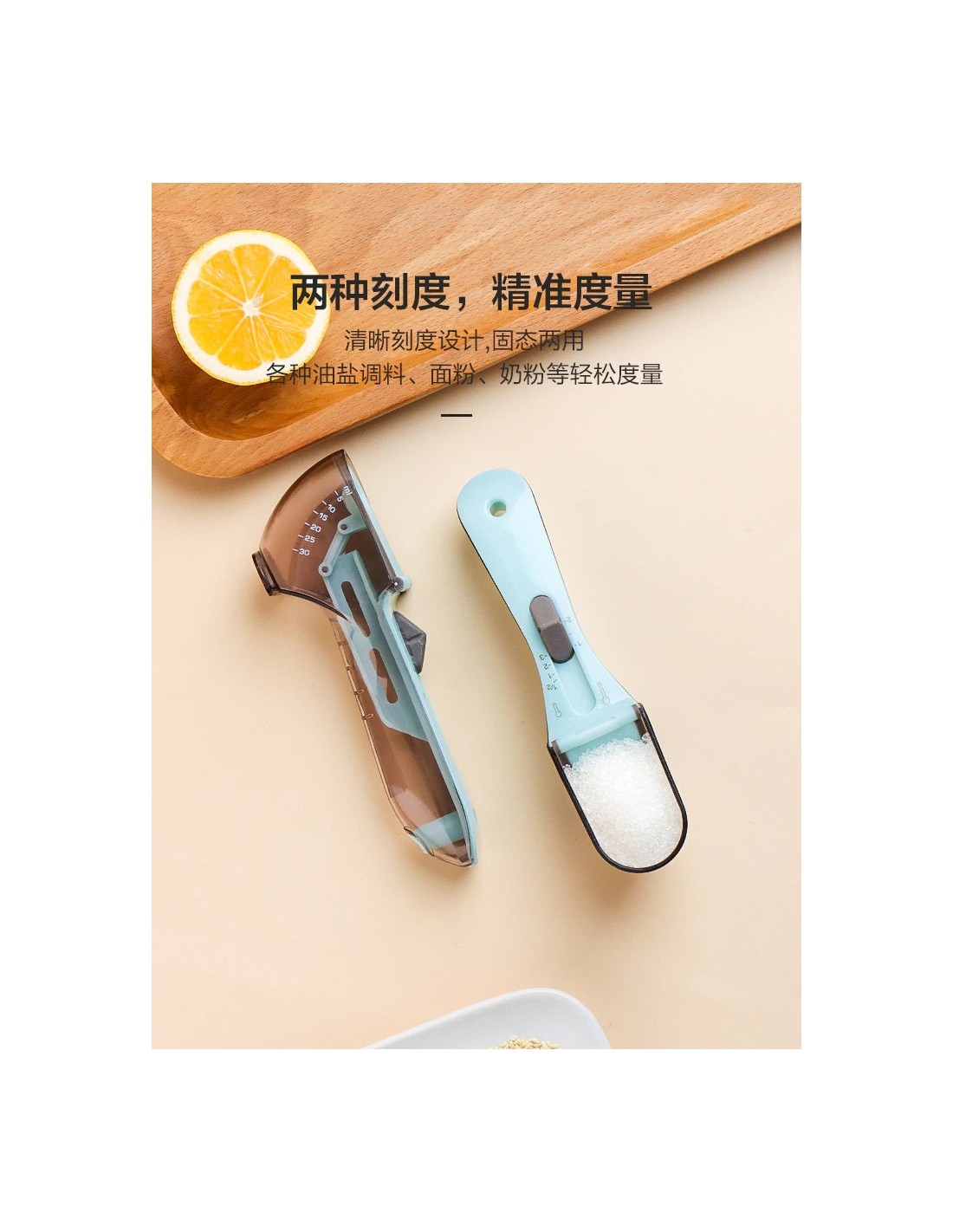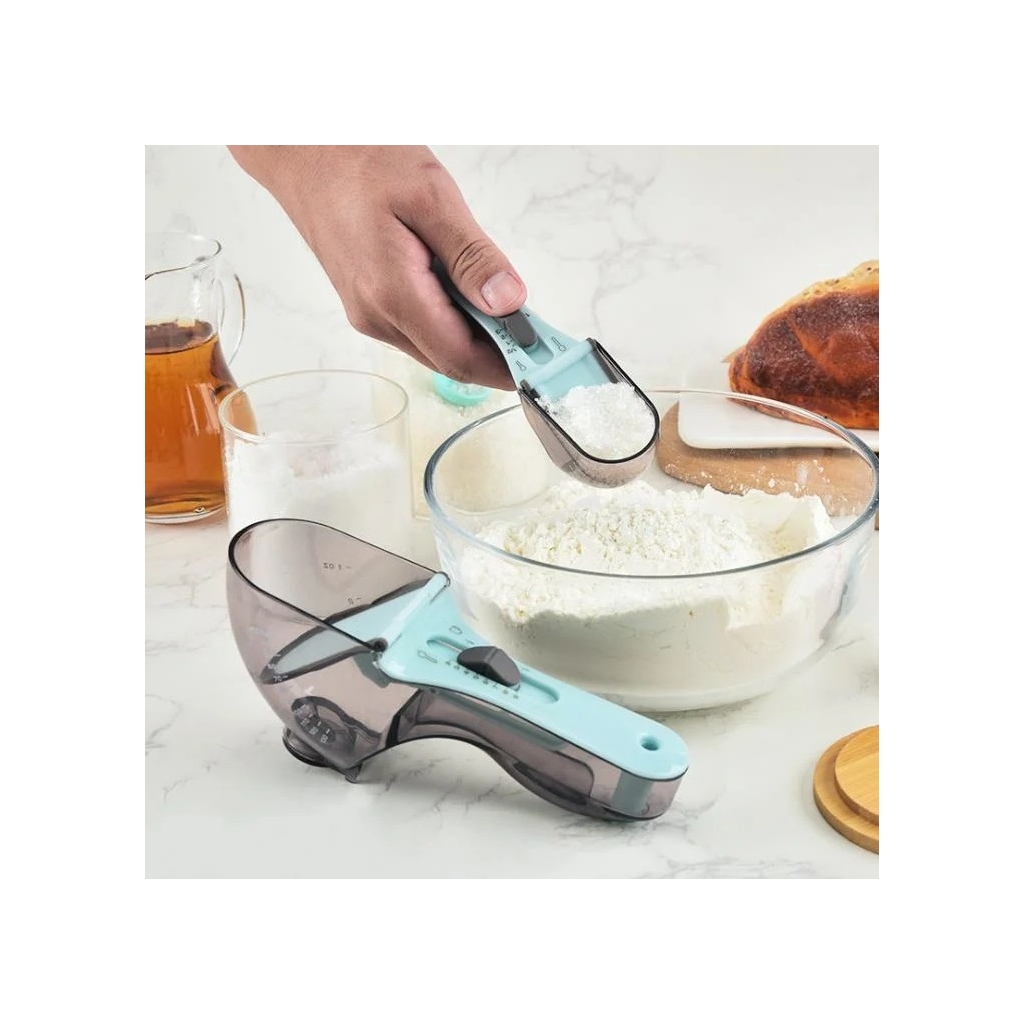 Facilite as suas receitas com estas colheres de medição ajustáveis, ideais para cozinhar ou preparar sobremesas com total precisão.