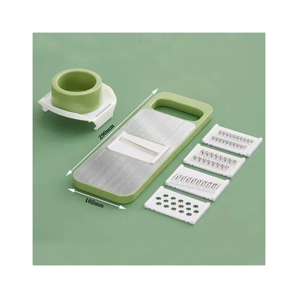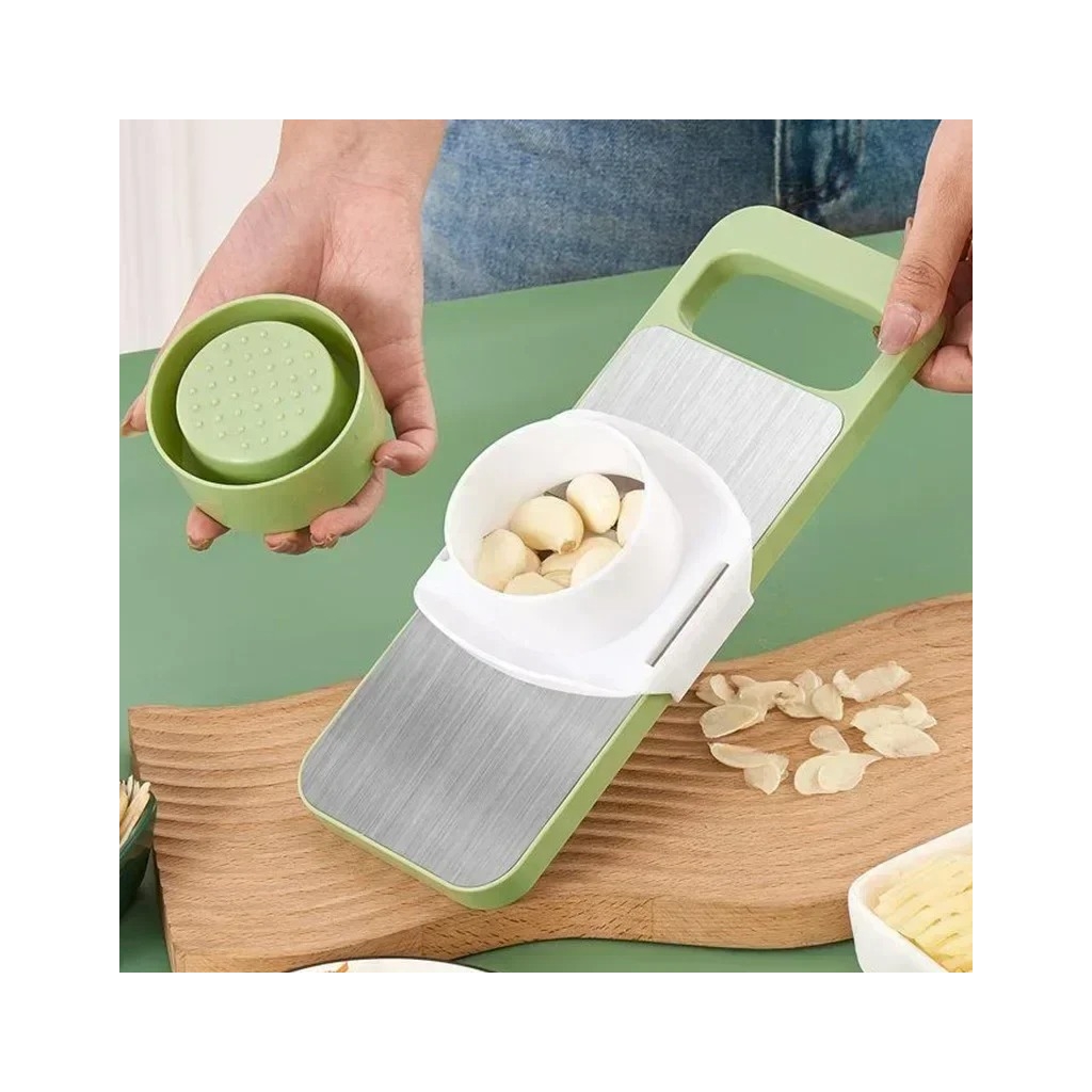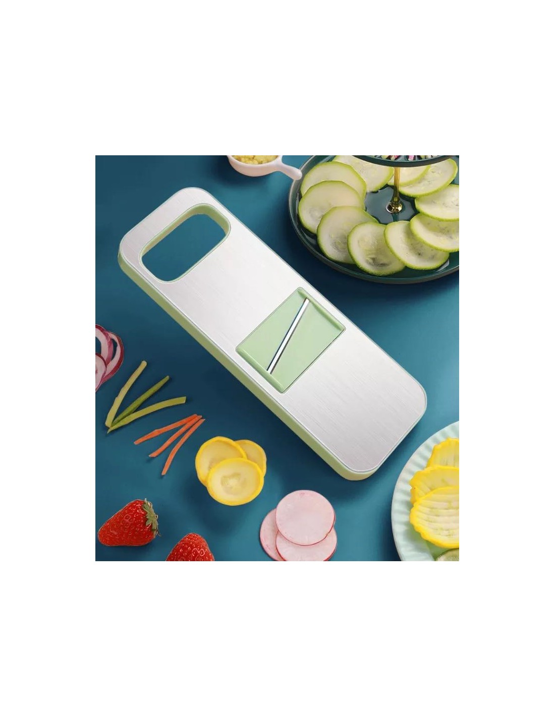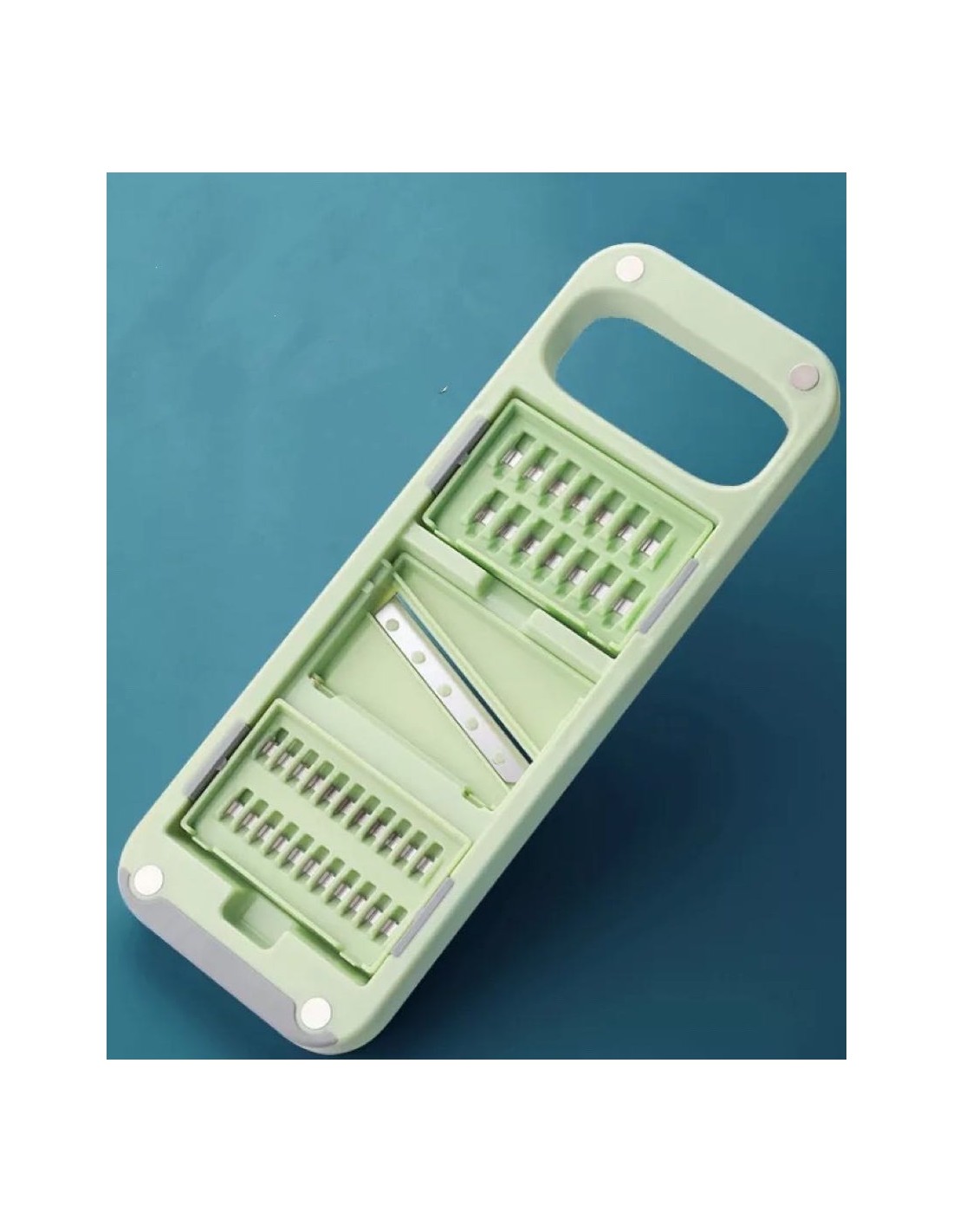 Fatiador e Ralador Multifuncional com lâminas intercambiáveis. Ideal para cortar, ralar e fatiar diversos alimentos. Design ergonómico, seguro e fácil de limpar. Perfeito para quem procura praticidade na cozinha.