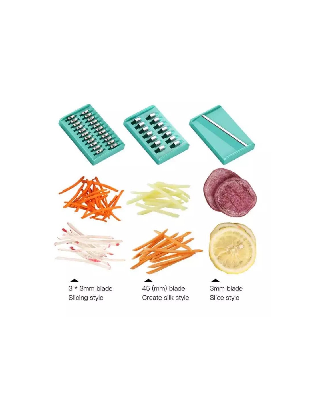 - Lâminas Intercambiáveis: Inclui várias lâminas para diferentes tipos de corte (fino, grosso, fatiado e ralado).