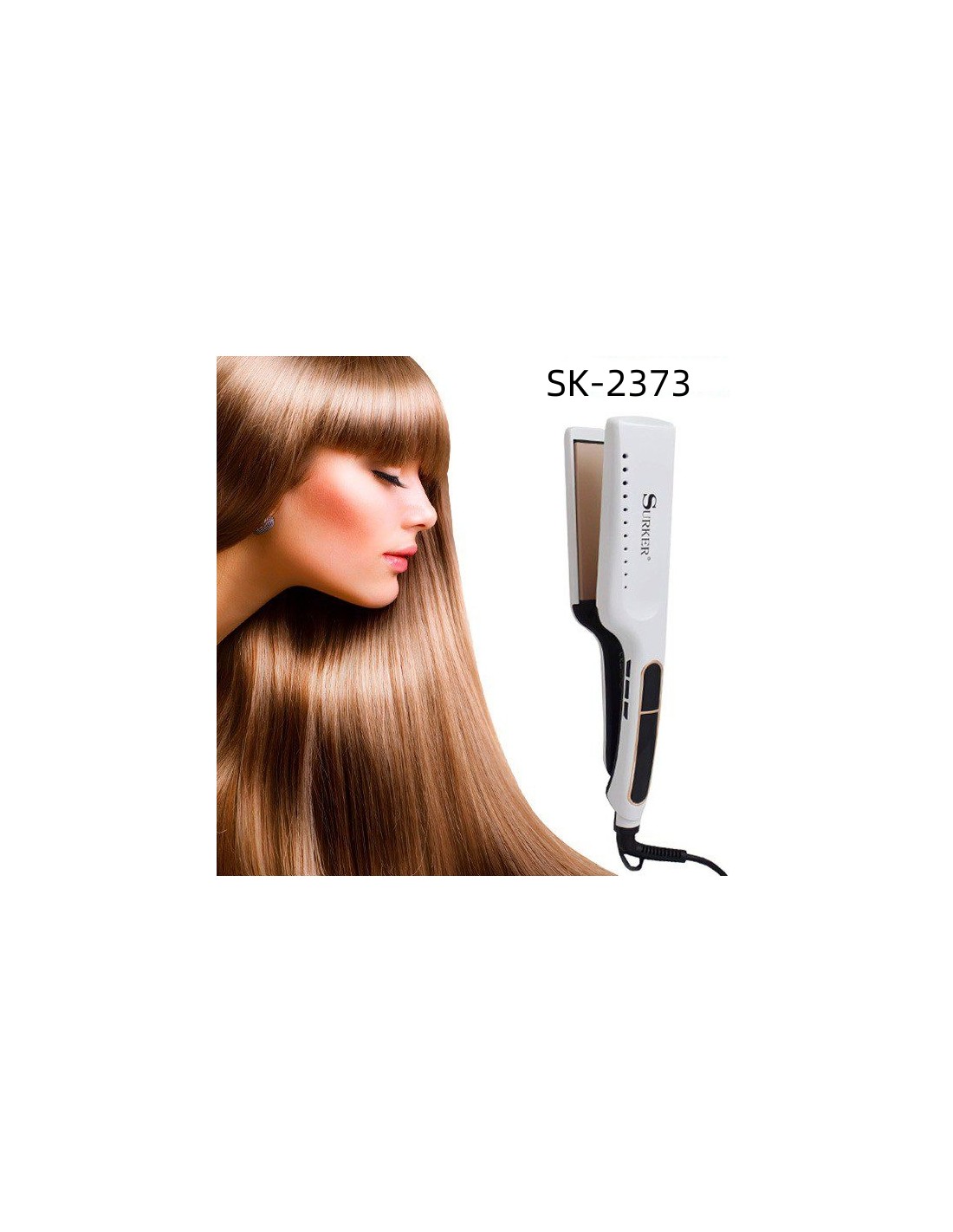 Alisador de cabelo Surker SK-2373 com placas de cerâmica e controlo de temperatura. Aquecimento rápido, design ergonómico e cabo giratório 360º. Ideal para cabelos lisos e brilhantes.