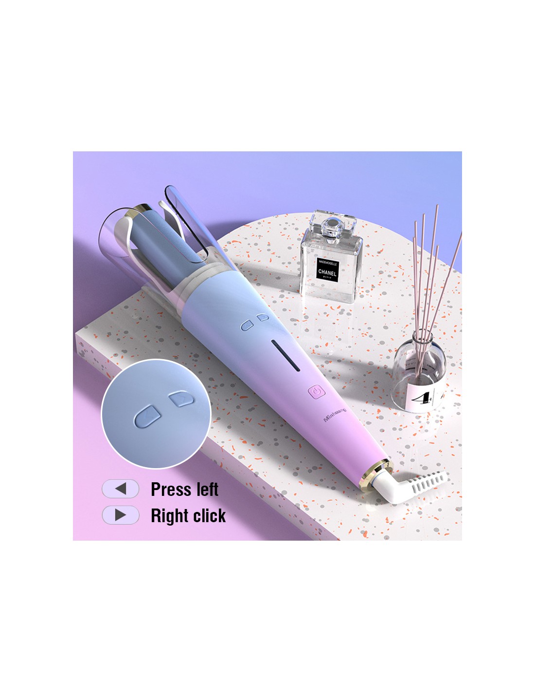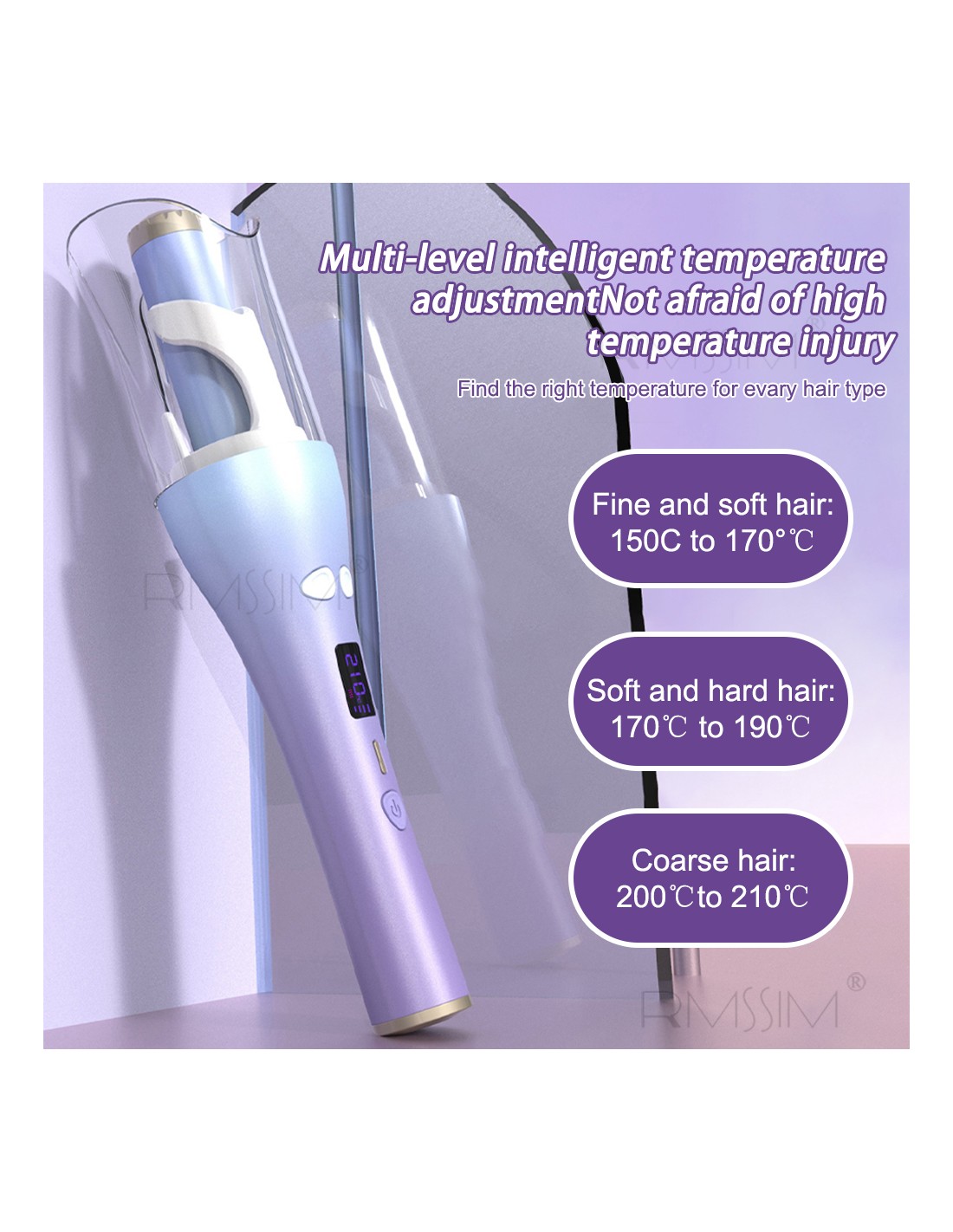 Modelador automático de cabelo com tecnologia inovadora. Ideal para criar caracóis perfeitos rapidamente. Design ergonómico, seguro e portátil, com bateria recarregável.