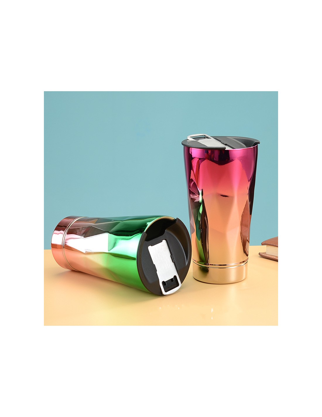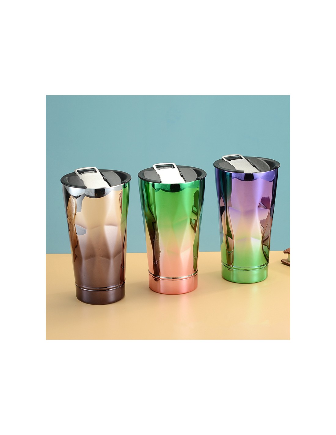 Este copo térmico destaca-se pelo seu design inovador e acabamento metalizado em cores vibrantes, perfeito para adicionar estilo ao seu dia-a-dia enquanto mantém as suas bebidas na temperatura ideal.