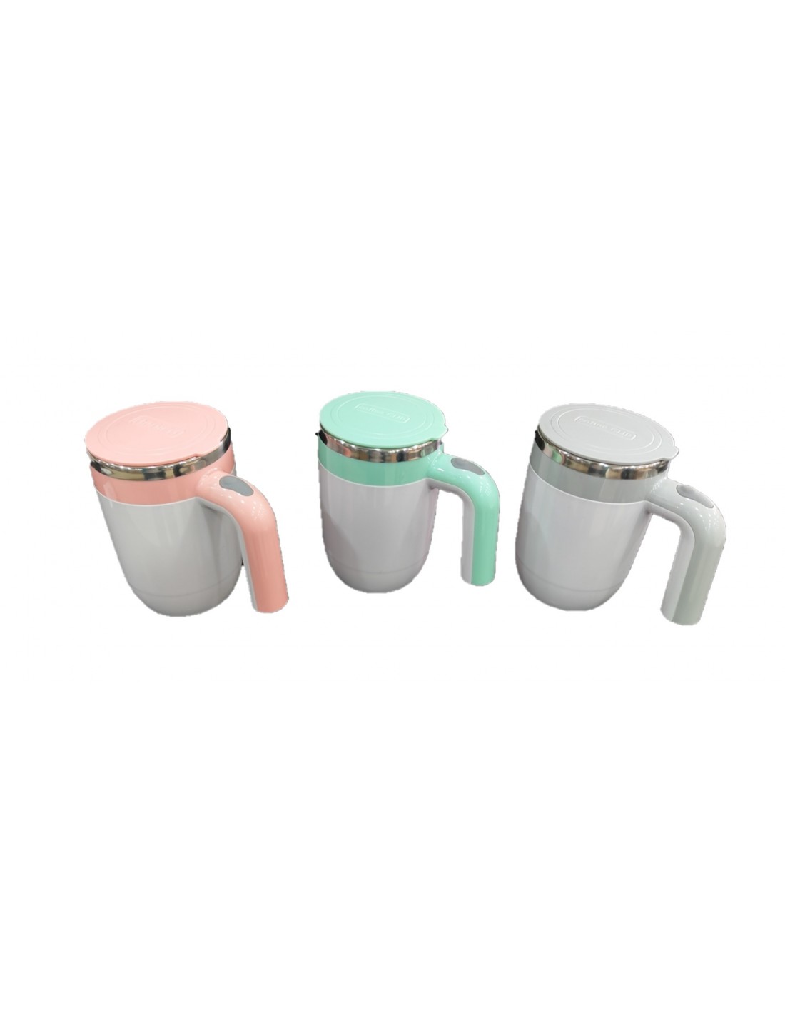 Caneca elétrica misturadora automática, ideal para café, chá ou batidos. Interior em aço inoxidável, isolamento térmico e design ergonómico para maior conveniência no dia-a-dia.