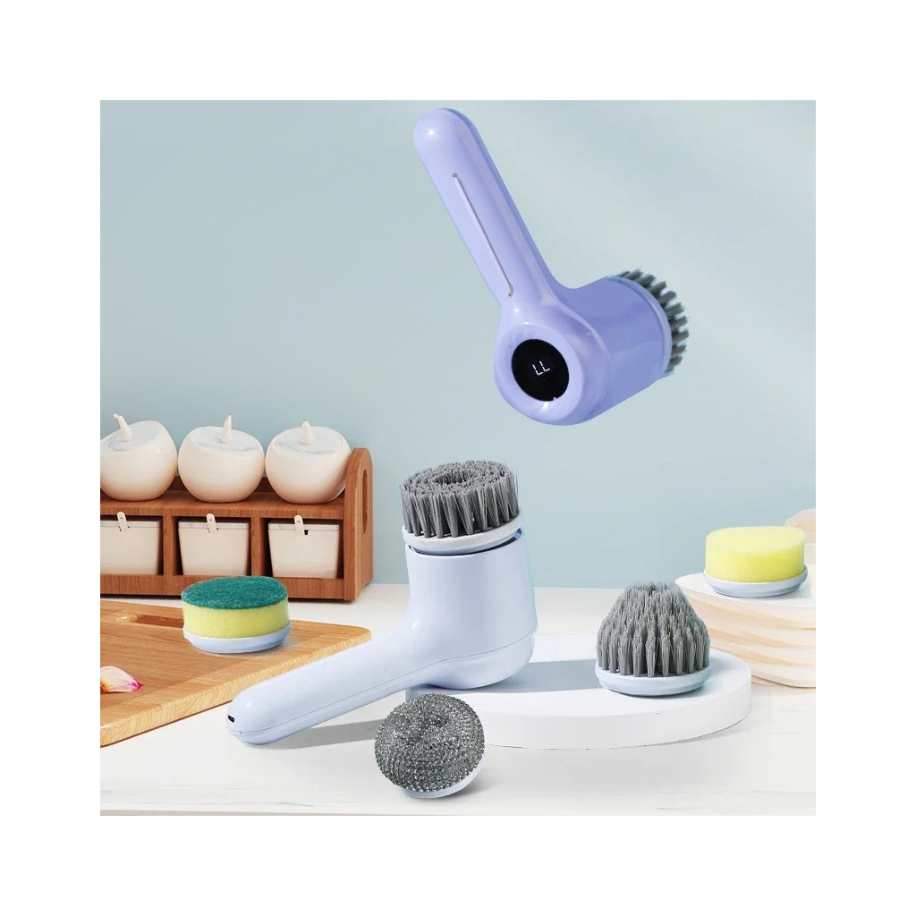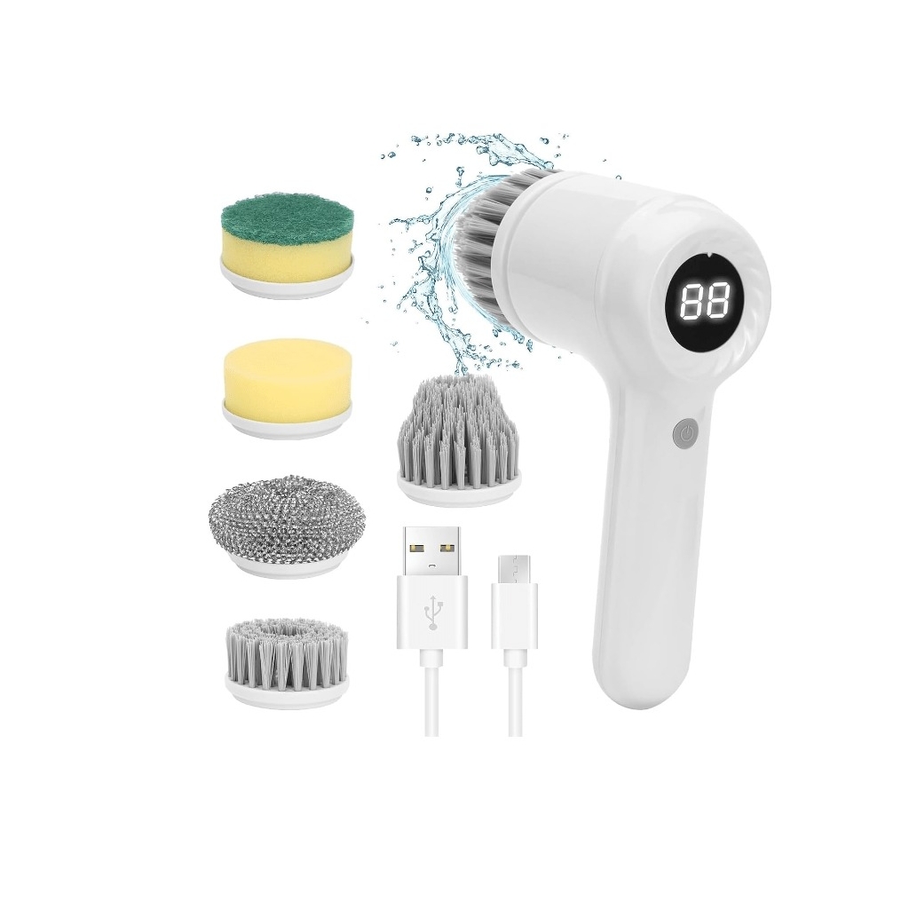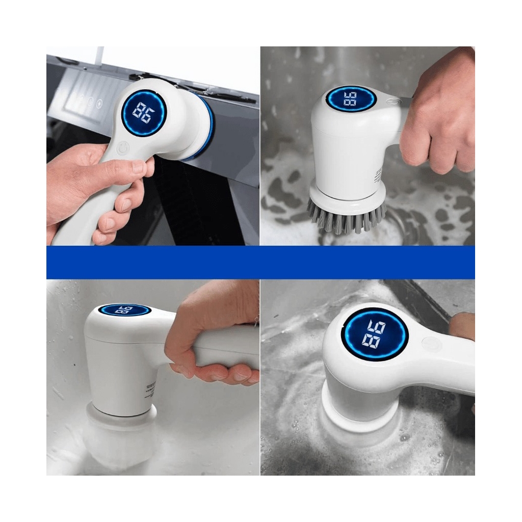 Escova de Limpeza Elétrica Multifuncional com cabeças intercambiáveis, ecrã LED e bateria recarregável. Ideal para cozinhas, casas de banho e superfícies diversas. Resistente à água e com autonomia prolongada, oferece eficiência e facilidade nas tarefas diárias.