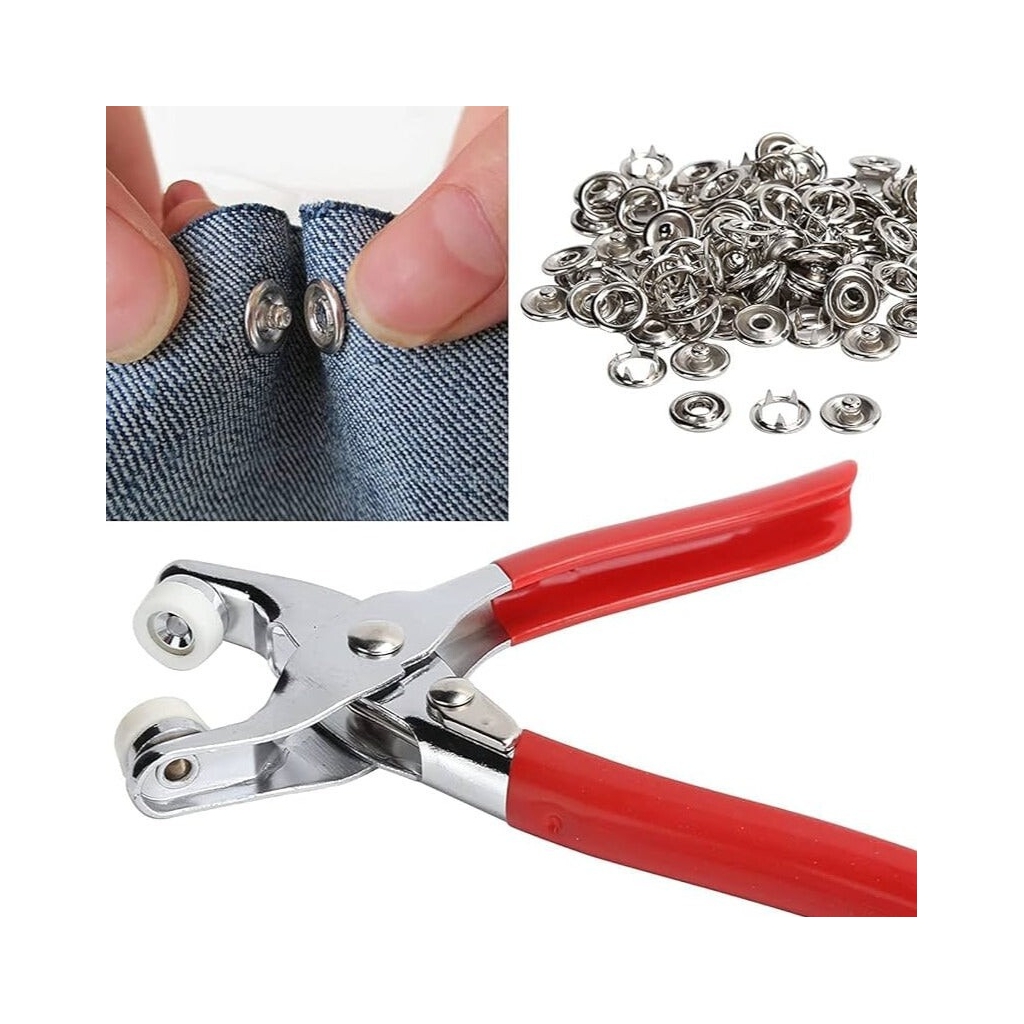 Eleve os seus projetos de costura com o Kit de Alicate de Botão de Pressão. Inclui alicate ergonómico e variedade de botões, ideal para acabamentos profissionais em roupas e acessórios. A escolha perfeita para entusiastas de costura e profissionais.