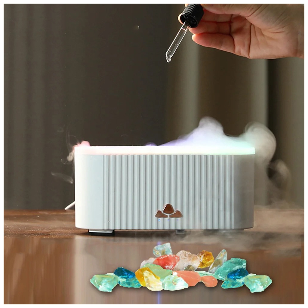 Humidificador decorativo com luzes LED e design elegante em Nuvem. Perfeito para aromaterapia, hidratação do ar e decoração de espaços. Um toque moderno e funcional para qualquer ambiente.