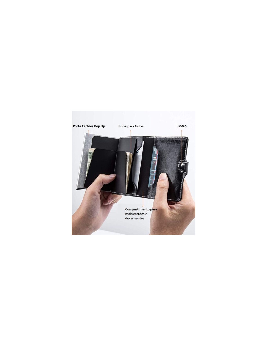 - Capacidade Ideal: Armazena até 6 cartões, além de compartimento extra para notas.