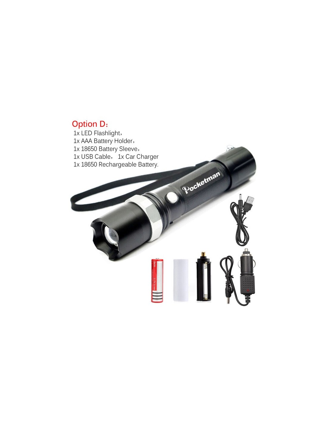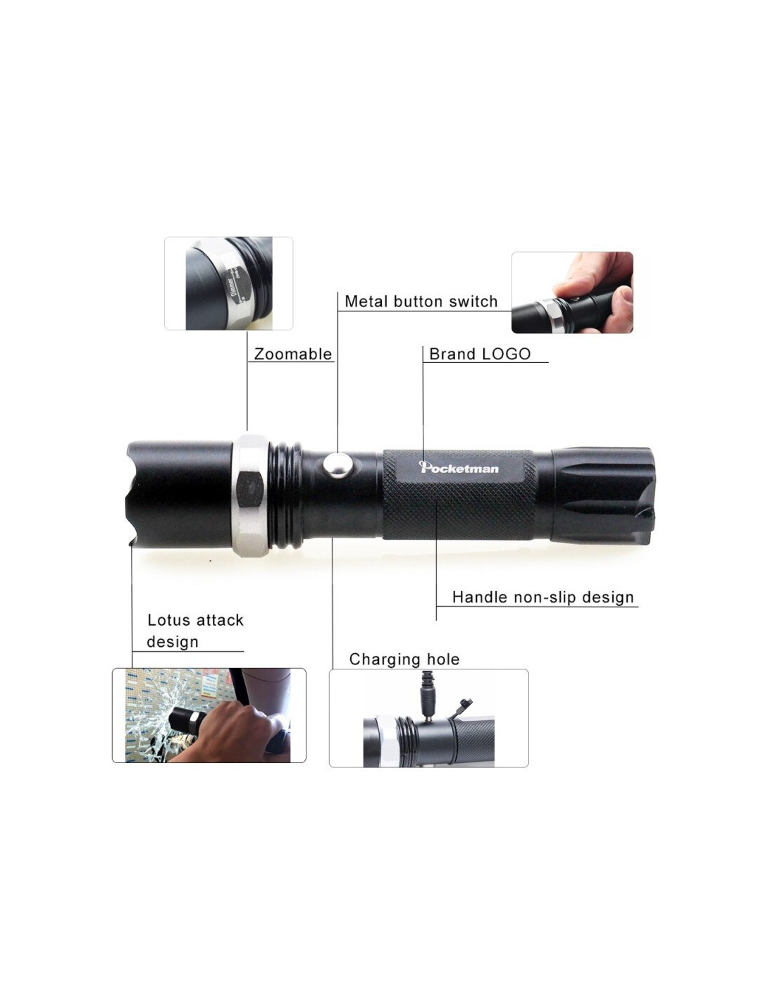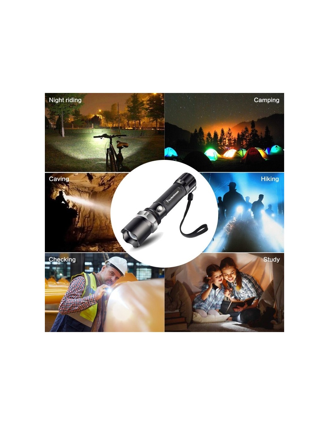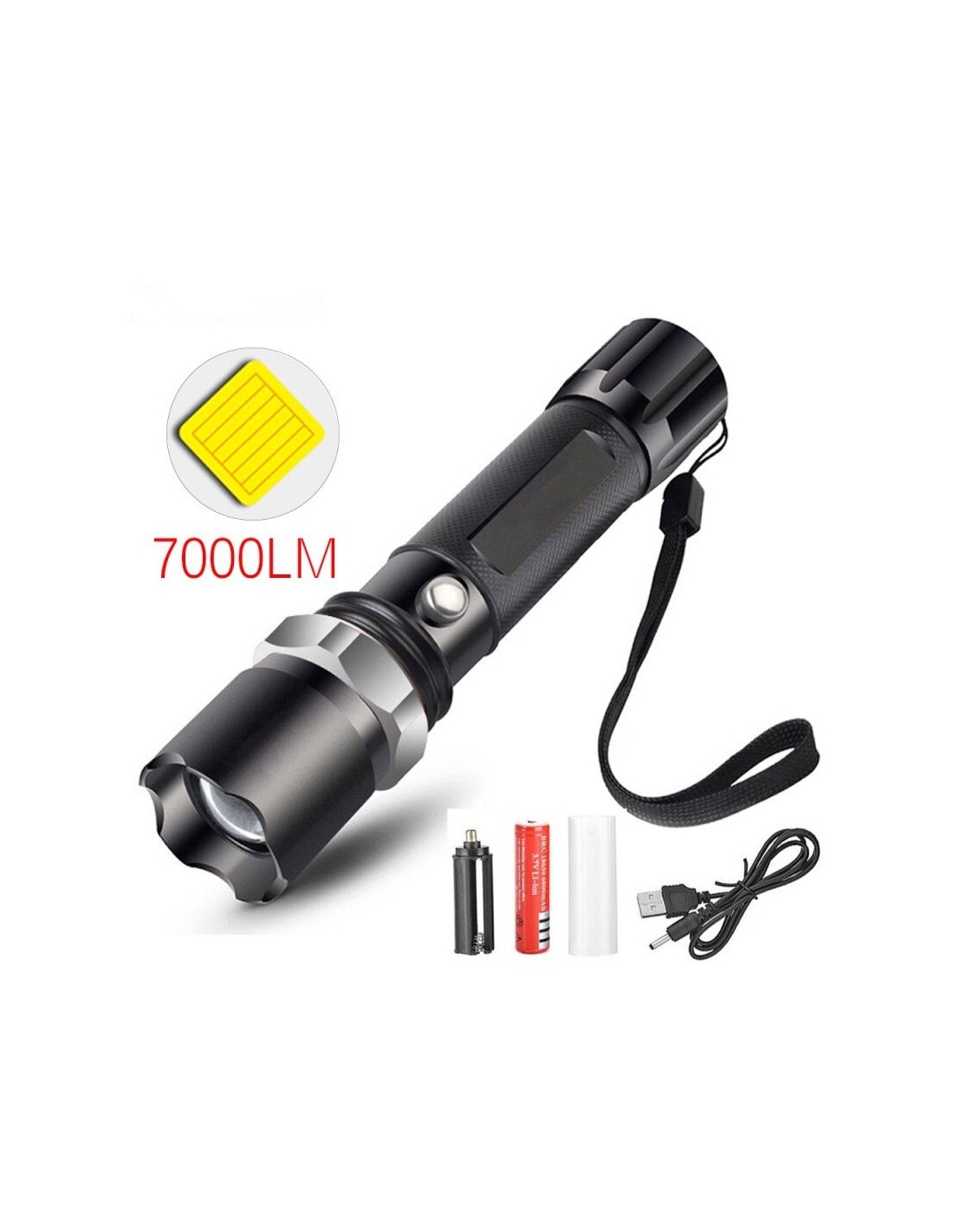 Lanterna LED Tática recarregável com zoom ajustável, ideal para campismo, caminhadas e uso profissional. Oferece luz de alta intensidade, resistência a água e longa duração de bateria, garantindo desempenho em qualquer situação.